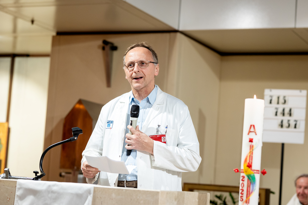 In der Kapelle des AKH Wien wurde am 29. April 2025 ein neues Altarbild der iranischen Künstlerin Samira Ghaemi von Weihbischof Franz Scharl gesegnet; es soll Hoffnung spenden, wo Menschen mit Leben und Tod konfrontiert sind. Das Bild ersetzt ein 2015 zerstörtes Werk und zeigt Jesus in leuchtenden Farben, umgeben von Menschen in warmen Tönen vor einem blauen Himmel. Wir waren mit der Kamera dabei.