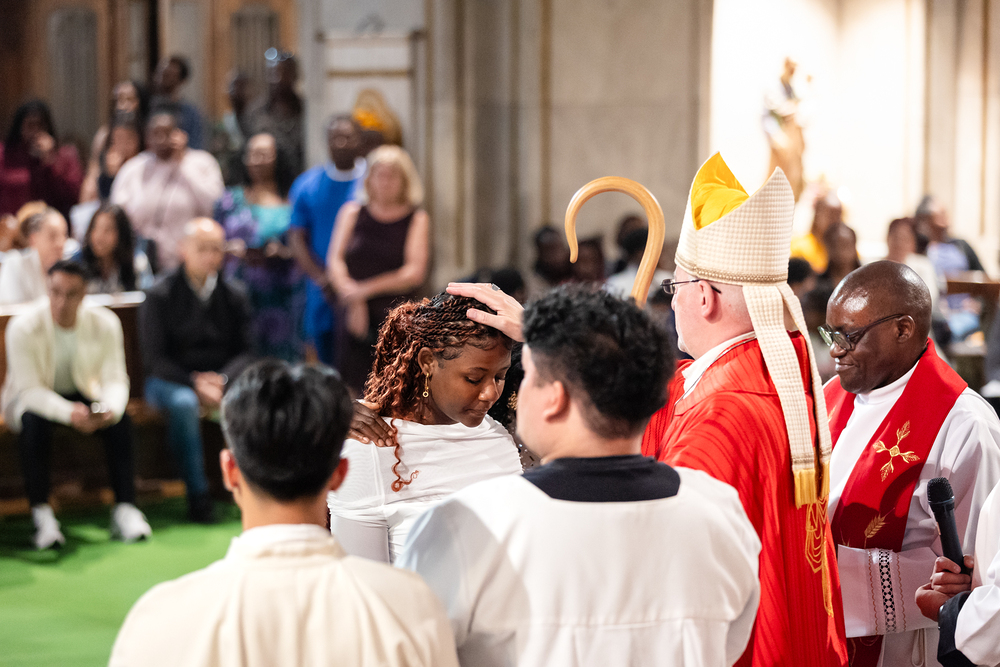 Weihbischof Franz Scharl spendete 61 Mitgliedern der anderssprachigen Gemeinden in der Wiener Canisiuskirche das Sakrament der Firmung.