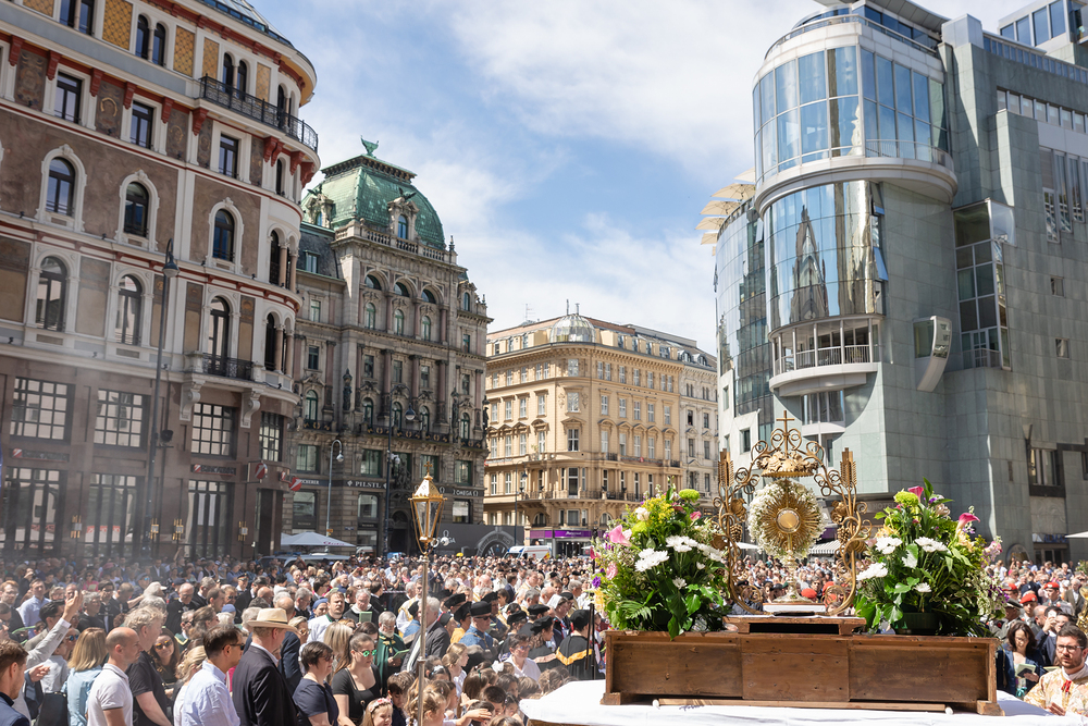 Großer Stadtumgang zu Fronleichnam mit Kardinal Schönborn